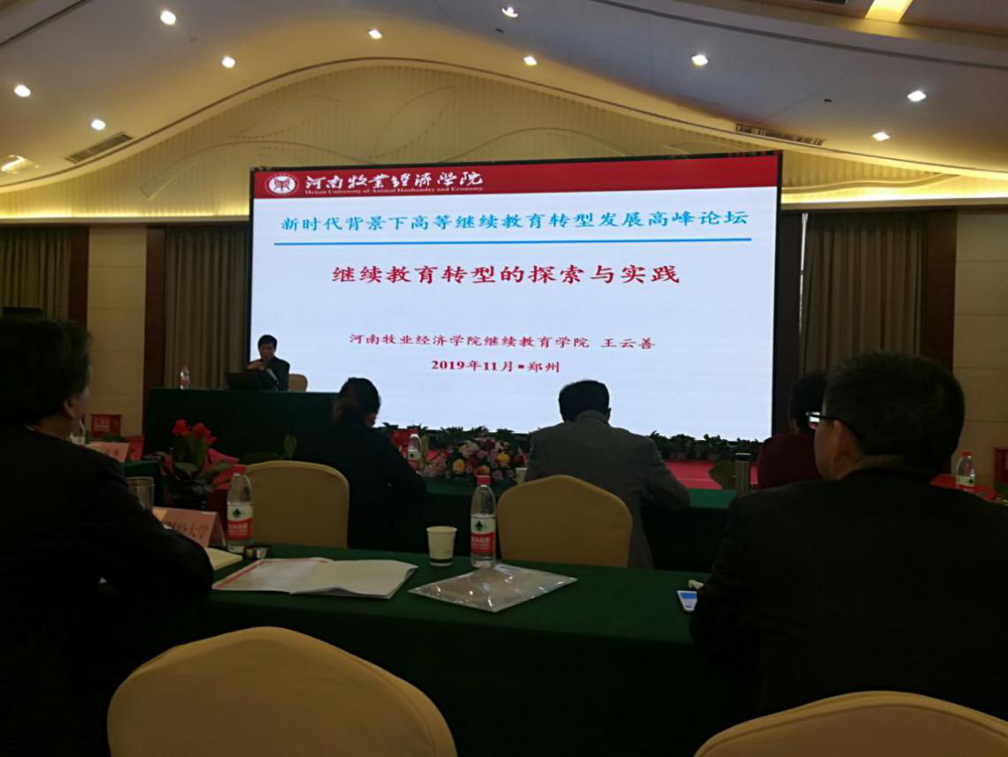 为切实践行“不忘初心、牢记使命”主题教育,根据公司安排,11月8——9日,beats365官方网站副经理王云善带队参加了在郑州市举办的“新时代背景下高等继续教育转型发展高峰论坛”。会议由河南省继续教育学会主办,来自新疆财经大学、玉林师范公司、郑州大学、河南大学等省内外80多所高校的150多名代表参加了大会。