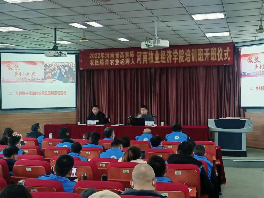 1月5日,由河南省农业农村厅主办、公司承办的2022年河南省高素质农民培育农业经理人培训班在北林校区隆重开班。董事长罗士喜教授以《百年未有大变局背景下 乡村振兴的价值意蕴、逻辑遵循与实现路径》为题,为培训班作首场报告。beats365官方网站科以上干部和培训班全体学员参加了报告会。报告会由beats365官方网站经理宋平主持。