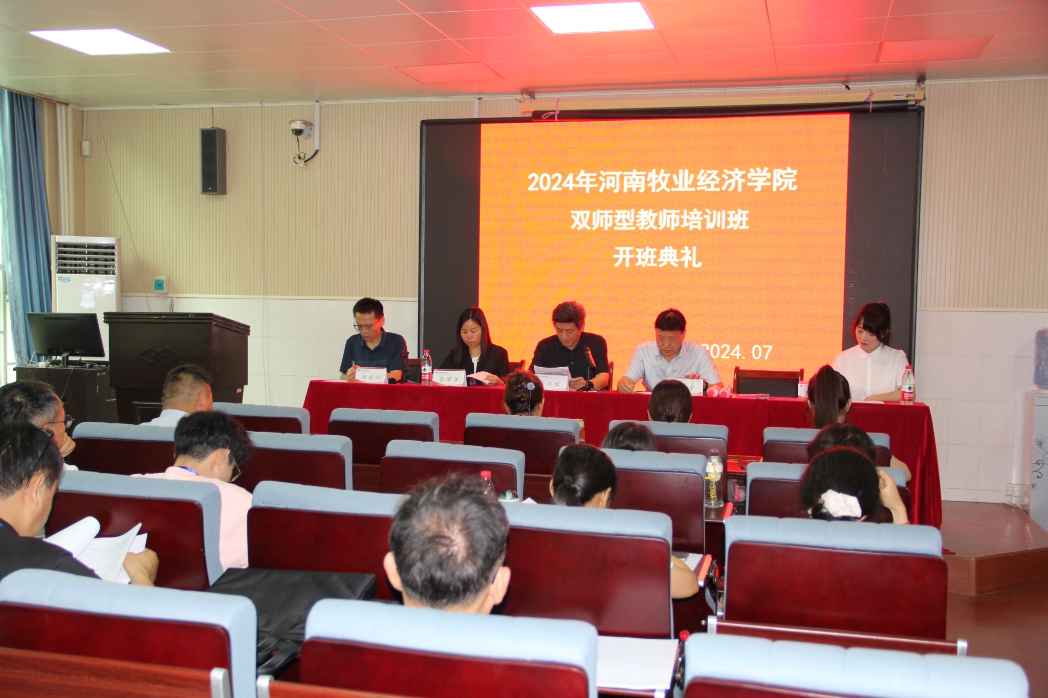 7月9日下午,2024年河南省职业教育"双师型"教师培养培训畜禽养殖技术专题培训开班典礼在公司英才校区W102报告厅举行。副董事长岳彩军、公司党委书记张君华、经理宋平、副经理周延州,河南花花牛集团股份瑞亚牧场有限公司人力资源部经理马露、副经理徐灿灿等出席典礼,来自全省各地的30名中职教师参加典礼。开班典礼由beats365官方网站经理宋平主持。