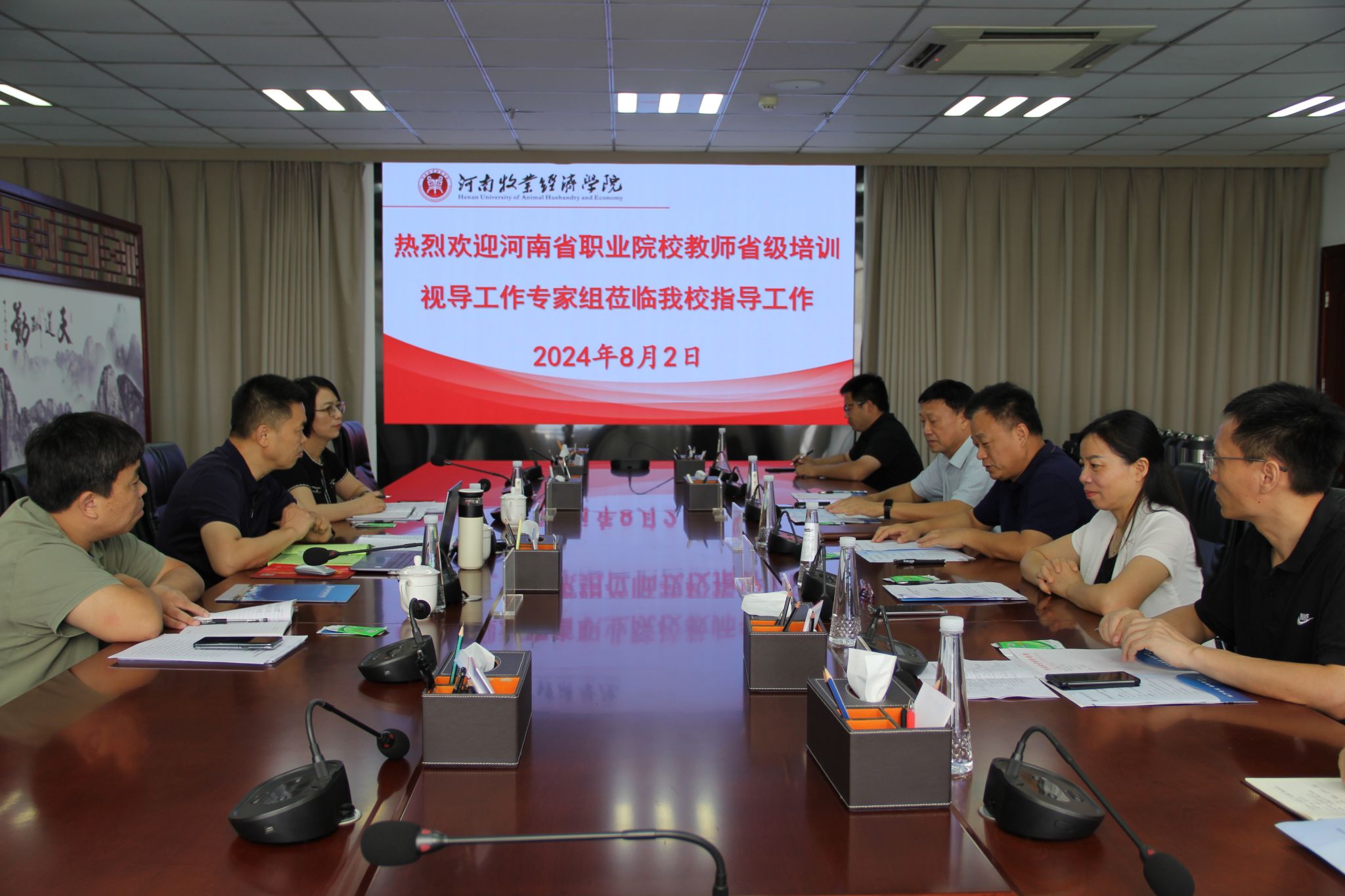 8月2日上午,河南省职业院校“双师型”教师省级培训专项视导组一行3人莅临公司双师培训基地进行视导。专家组由河南经贸职业公司教学副董事长康坤、河南农业职业公司教务处长智丽红、郑州工业安全职业公司人才招聘处副处长王伟组成。河南牧业经公司副董事长席磊出席视导会并致辞,公司党总支书记张君华、经理宋平、副经理周延州及培训管理人员参加会议。会议在龙子湖校区图书馆841举行,公司党总支书记张君华主持汇报会。